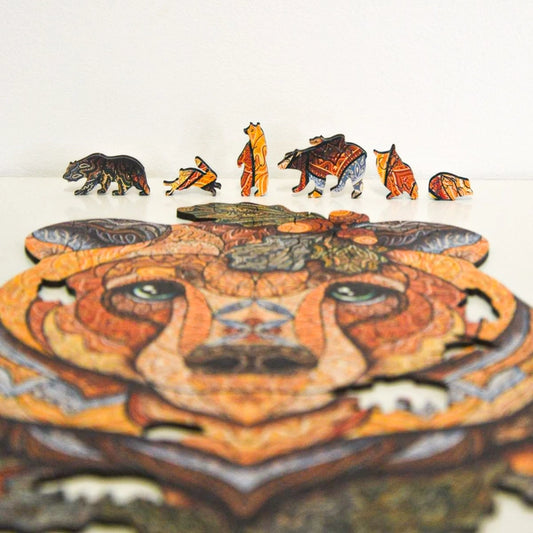 Forest Bear Jigsaw, scatola A4 Premium - Puzzle Mandala in Legno 150pz.