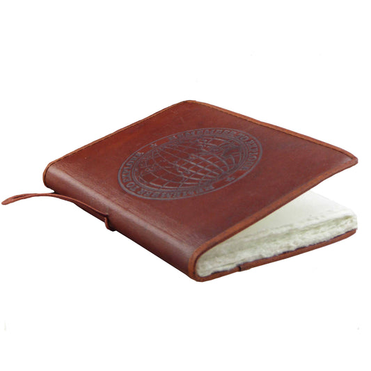 Quaderno in pelle e carta pergamena con mappa del mondo