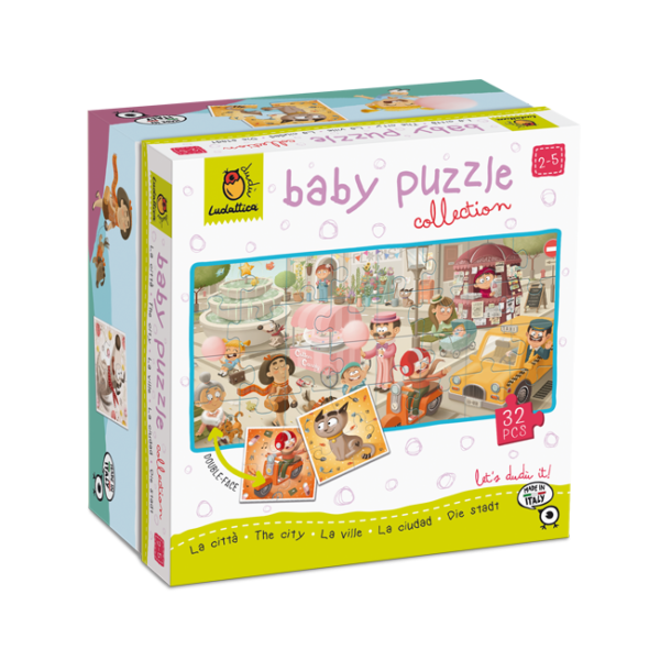 Che bello passeggiare per le vie della città, dove si possono fare tanti incontri! Componi il puzzle e poi divertiti a scoprire tutti i personaggi. Con le tessere double-face il divertimento sarà doppio!