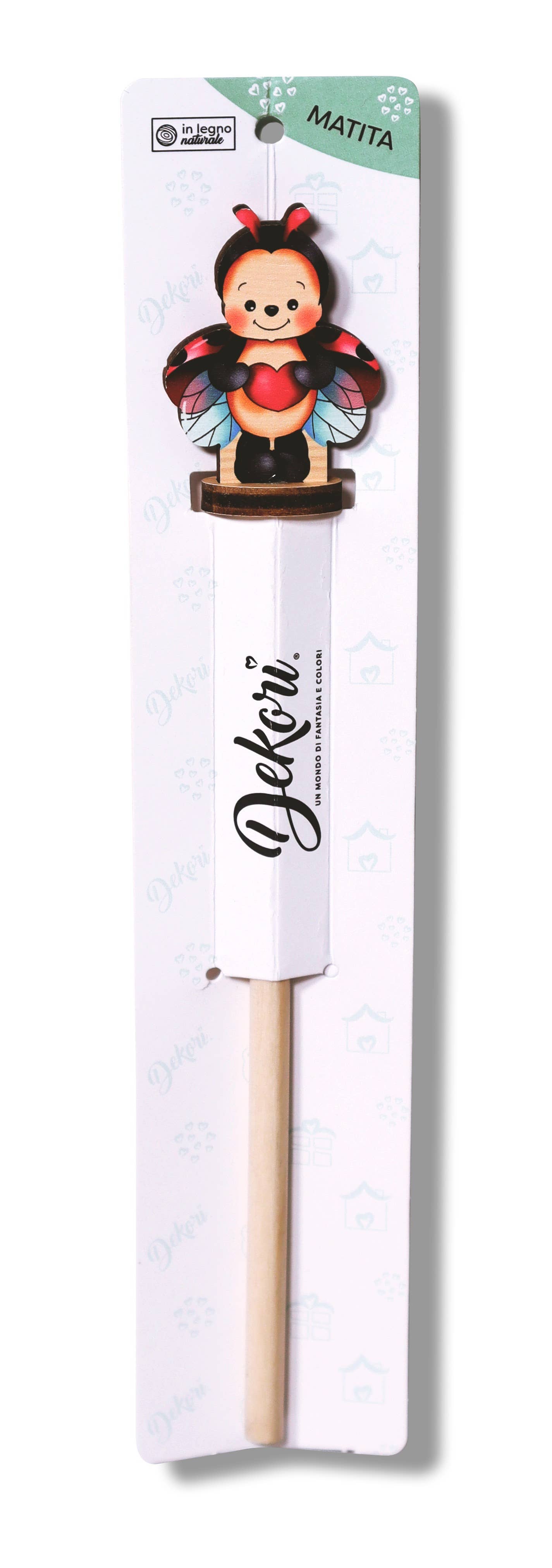 MATERIALI -Ogni matita in legno firmata DEKORI ha come cappuccio una simpatica figura in pioppo rifinita con vernici a base d'acqua. La stampa, in alta definizione, viene applicata sul legno con inchiostri atossici certificati per gli ambienti domestici.