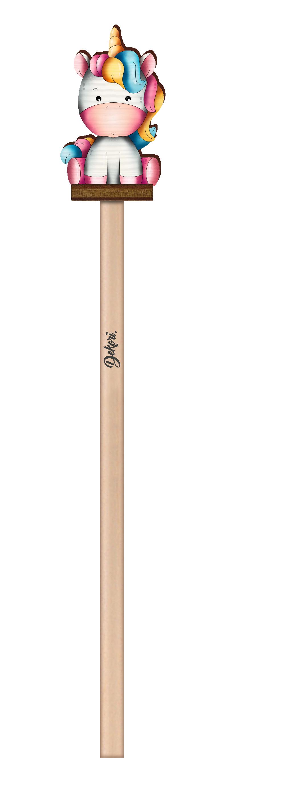 MATERIALI -Ogni matita in legno firmata DEKORI ha come cappuccio una simpatica figura in pioppo rifinita con vernici a base d'acqua. La stampa, in alta definizione, viene applicata sul legno con inchiostri atossici certificati per gli ambienti domestici.