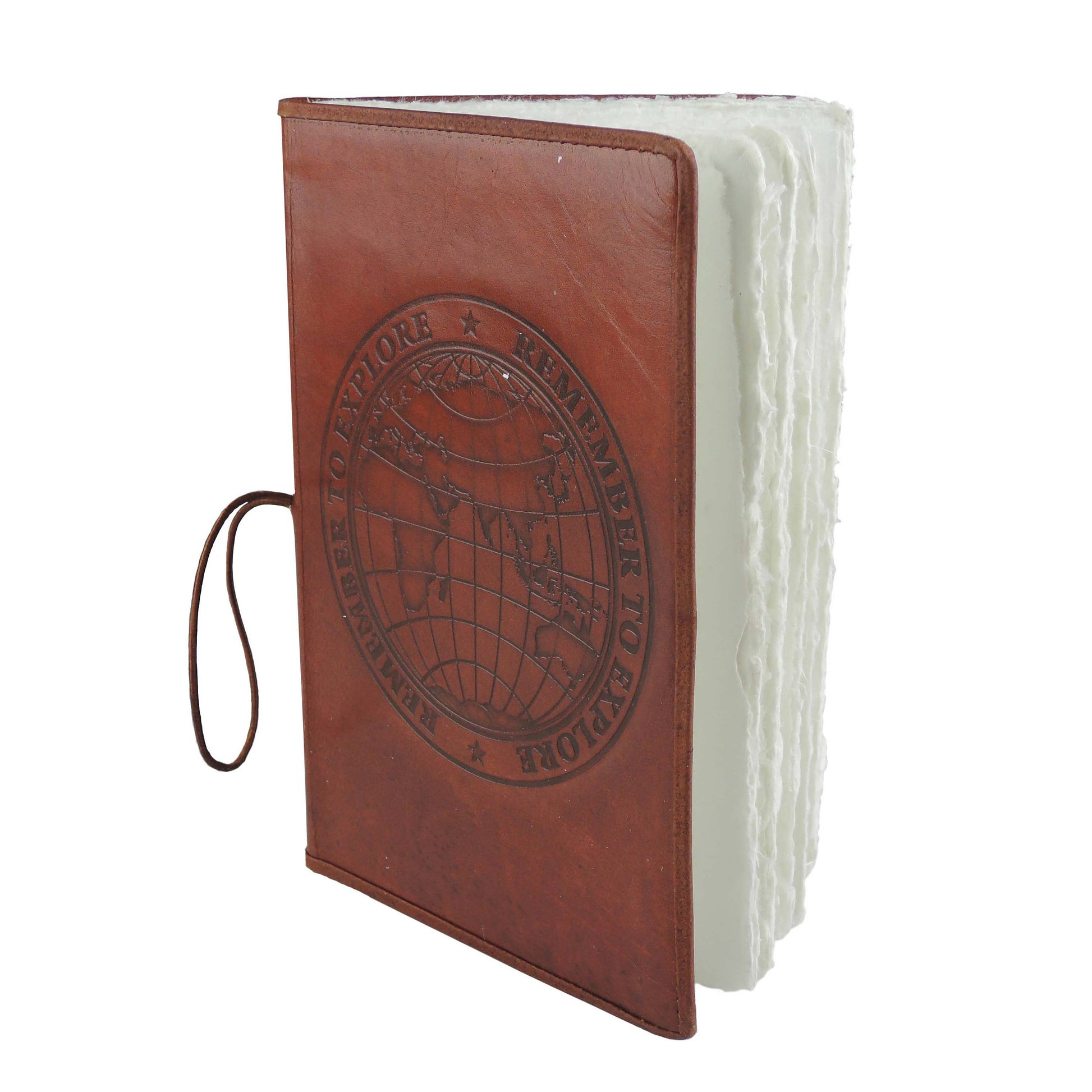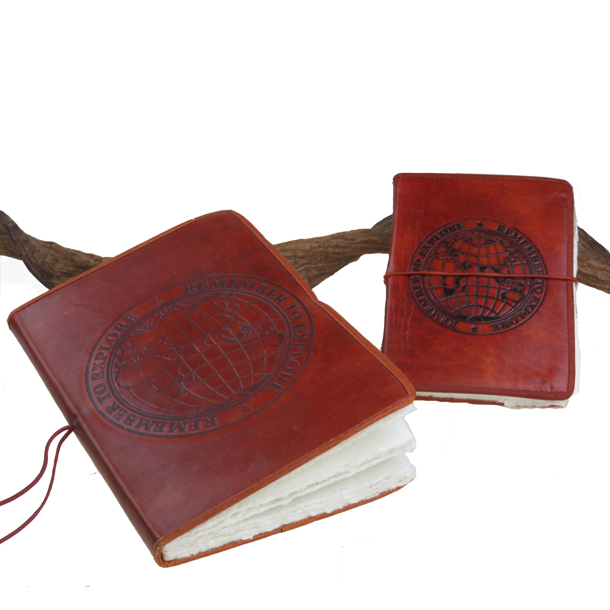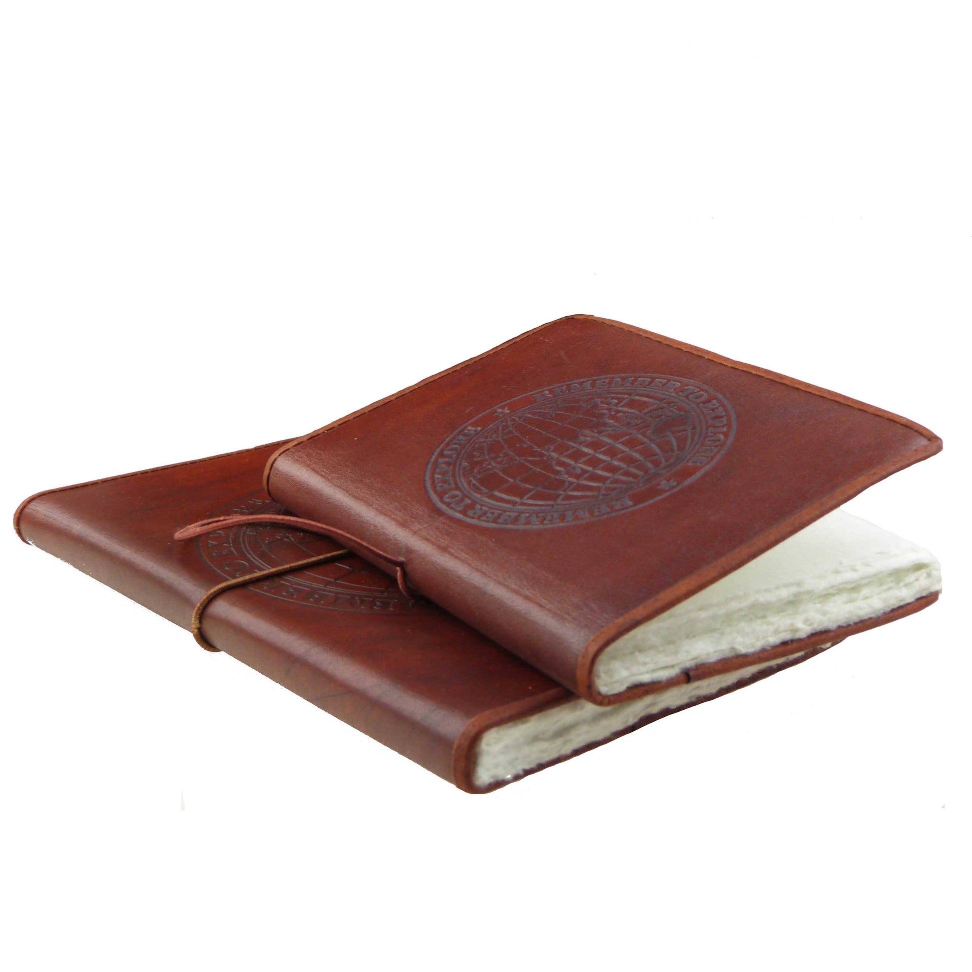 Quaderno in pelle e carta pergamena con mappa del mondo
