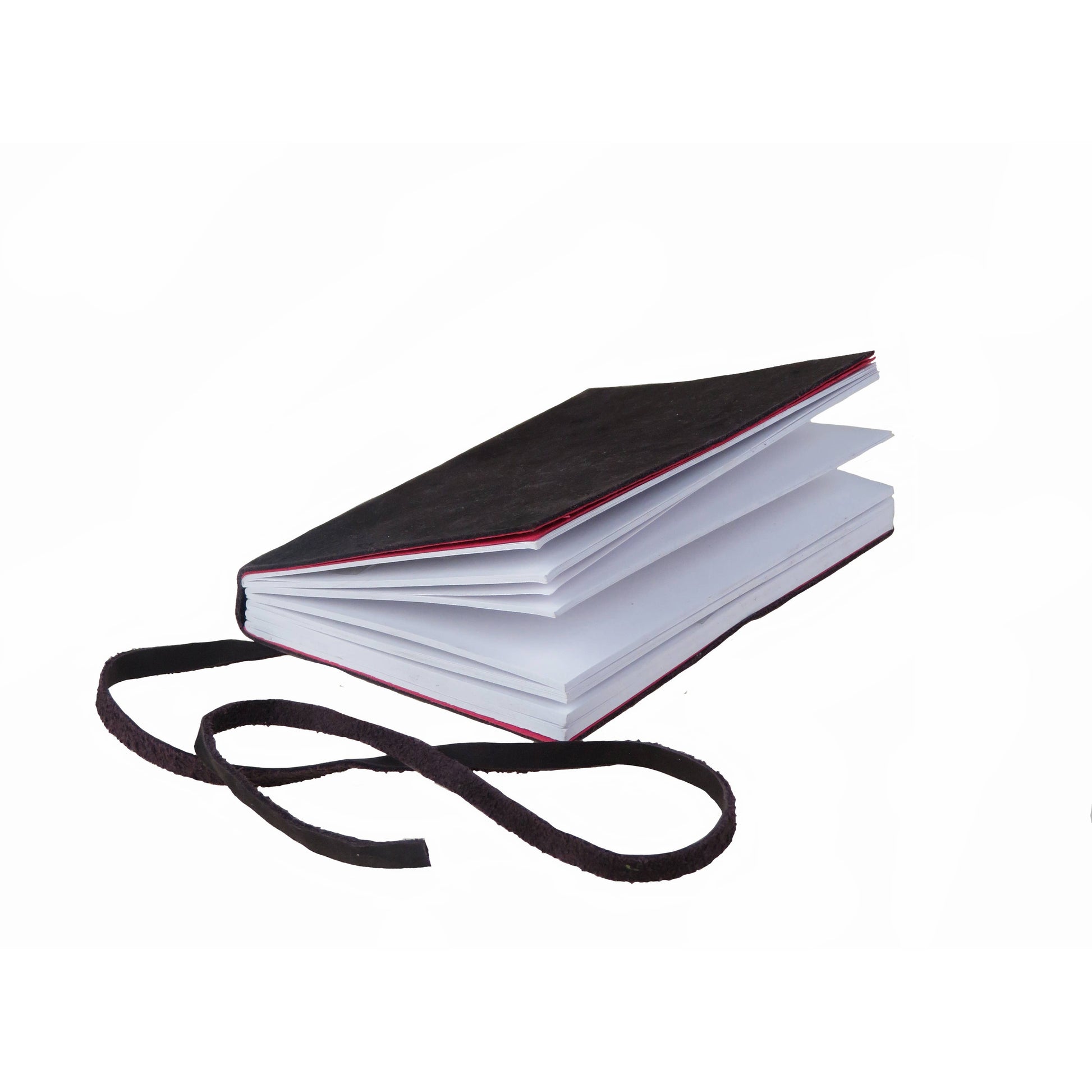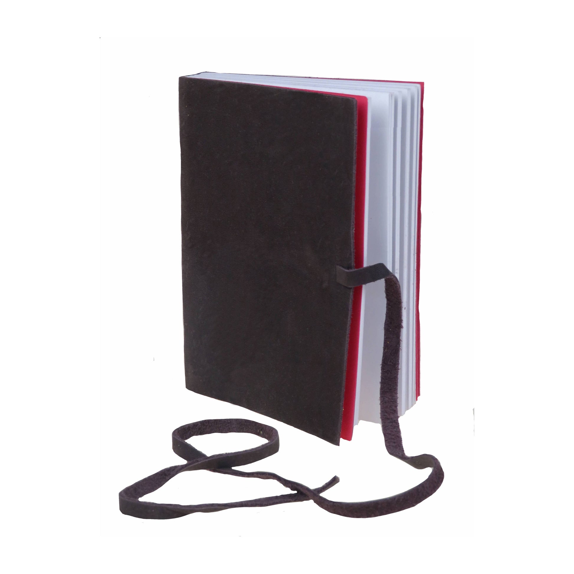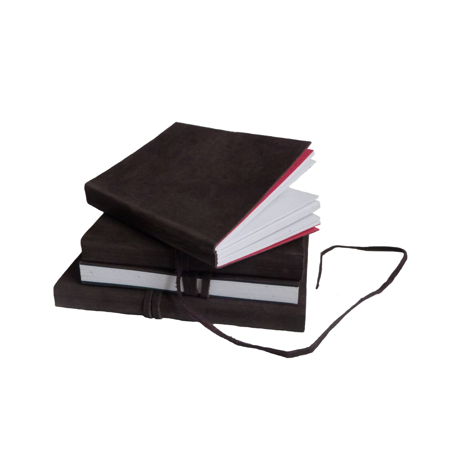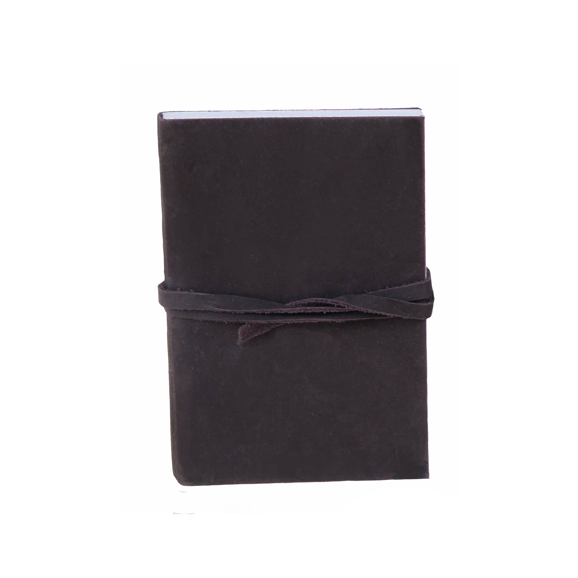 Piccolo taccuino con copertina in pelle nabuk particolarmente vellutata. Carta interna bianca