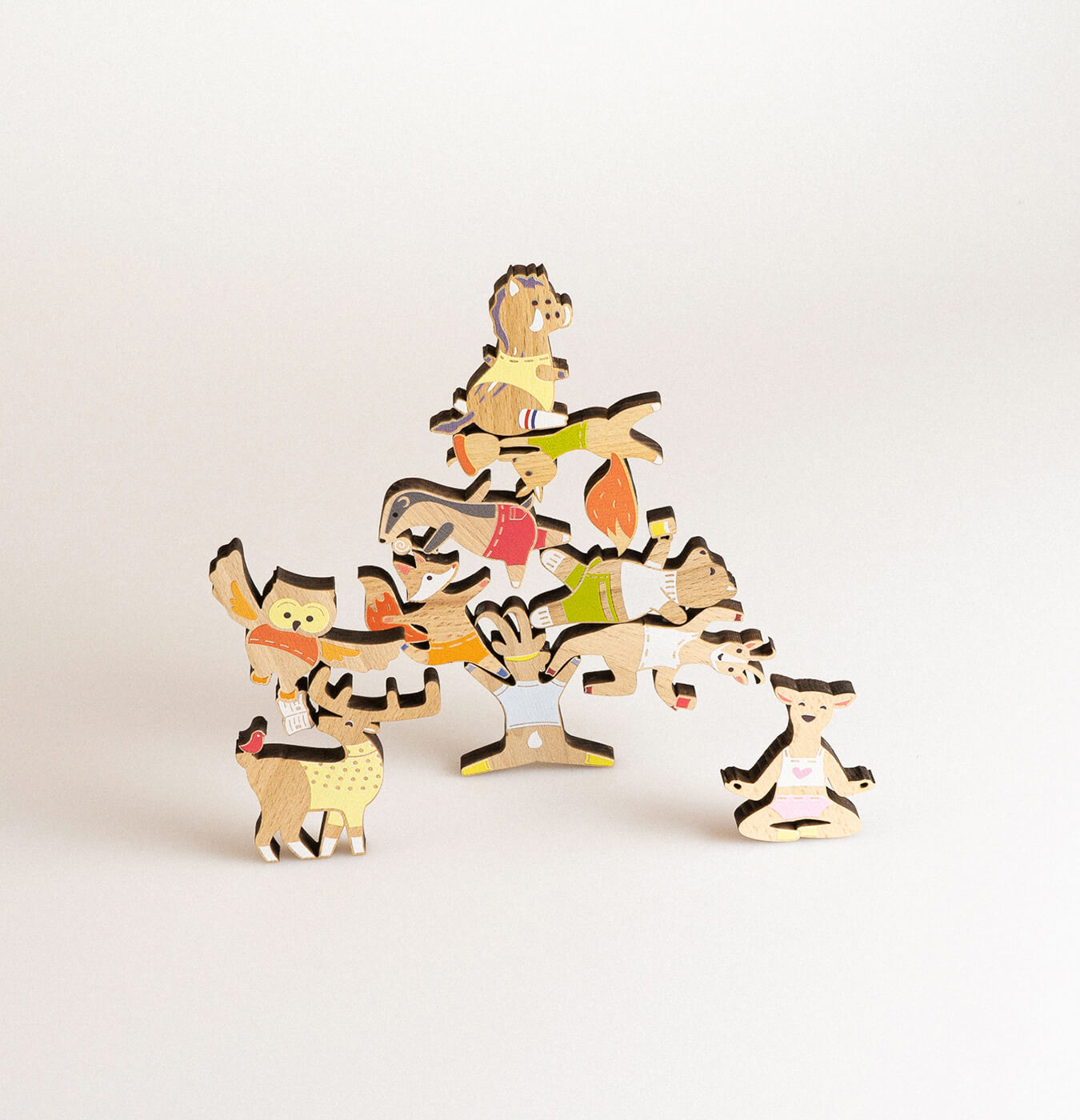 Stacking game, gioco di costruzioni in legno. Fai stare in equilibrio più animaletti possibili sovrapponendoli uno sopra l’altro. Una scatola contiene 10 animaletti.